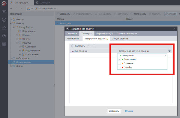 В интерфейсе планировщика нет возможности настроить оповещение заинтересованных пользователей о статусе выполнения задачи.